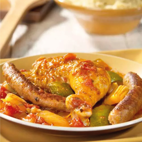 - Ajoutez les merguez coupées en 3 et les morceaux de courgettes. Couvrez à nouveau et poursuivez la cuisson pendant 10 min.